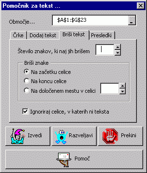 - V vnosnem polju Območje... najprej določite območje celic, iz katerih želite brisati tekst.