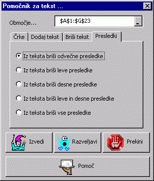 - V vnosnem polju Območje... najprej določite območje celic, iz katerih želite brisati presledke.
