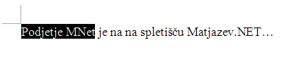 Kot rečeno, najprej napišete besedilo, recimo Podjetje MNet in besedilo označite: