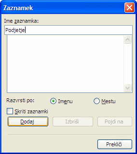 V vsakem primeru se vam odpre novo okno, kamor pač vpišete ime zaznamka:
