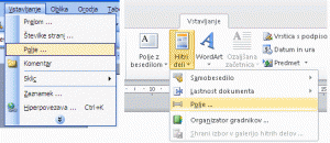 S tem ste zaznamek definirali, sedaj pa ga lahko vstavite na poljubno mesto v dokumentu. Zaznamek vstavite z uporabo polja REF, kar v Wordu 2003 (in nazaj) storite tako, da izberete menu Vstavi / Polje, v Wordu 2007 (in naprej) pa trak Vstavljanje / Hitri deli / polje.