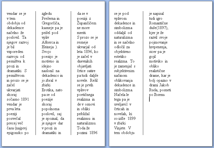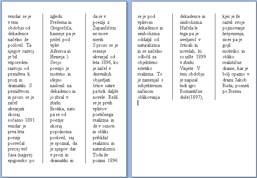 Ko v Wordu urejate kakšno publikacijo ali letak – mogoče pesem, se prej ali slej srečate s stolpci, ki jih je v Wordu zares preprosto ustvariti. Toda ko vsebino napišete, se na zadnji strani pojavi nekaj grdega, neestetskega! Zadnja stran je namreč popisana samo delno in to zares ne zgleda estetsko.