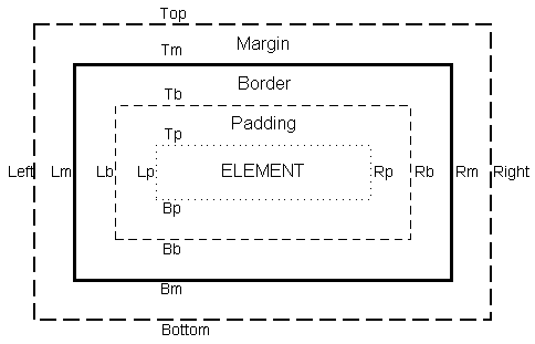 Da razložim še kratice. Vse kratice so narejene po istem ključu. Prva črka predstavlja mejo (P == Padding, B == Border, M = Margin), druga črka pa predstavlja rob (t == top, b == bottom, l == left in r == right).